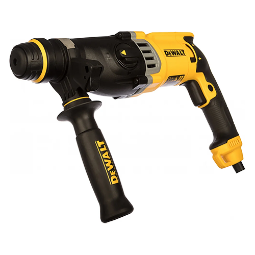 Перфоратор DeWalt D 25143 K имеет три режима работы: сверление, сверление с ударом, долбление. Переключение между ними осуществляется с помощью тумблера сбоку на корпусе. Предохранительная муфта защищает оператора и сам инструмент при блокировании оснастки в материале. Модель поставляется в чемодане, в котором её удобно хранить и транспортировать.