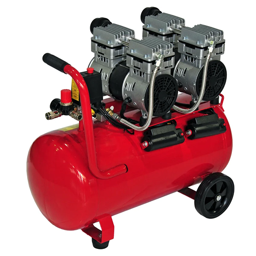Коаксиальный безмасляный малошумный компрессор Elitech КПБ 300/50М с ресивером на 50 литров имеет два выхода, быстросъемные разъемы рапид и елочка 8мм с вентилем. Оснащен регулировкой давления на выходе. Имеет два асинхронных двигателя и четыре поршневых блока. Оборудован двумя манометрами для контроля давления в ресивере и на выходе.