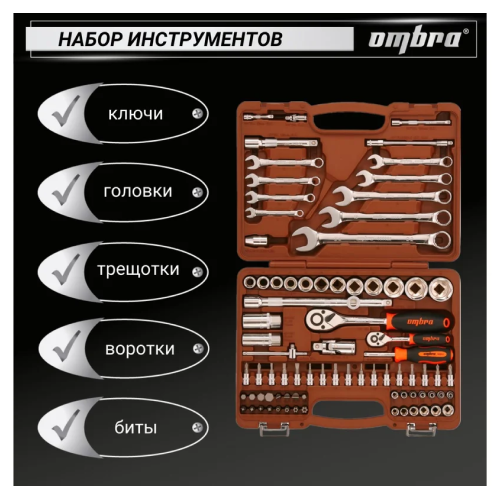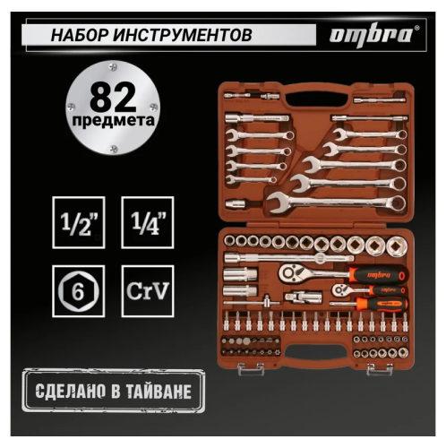 Универсальный набор инструмента Ombra OMT82S используется в автомастерских для работ с различными видами крепежа. Набор состоит из 82 предметов. На поверхность всех инструментов нанесено специальное трехслойное хромоникелевое покрытие для защиты от коррозии и простоты чистки после работы.